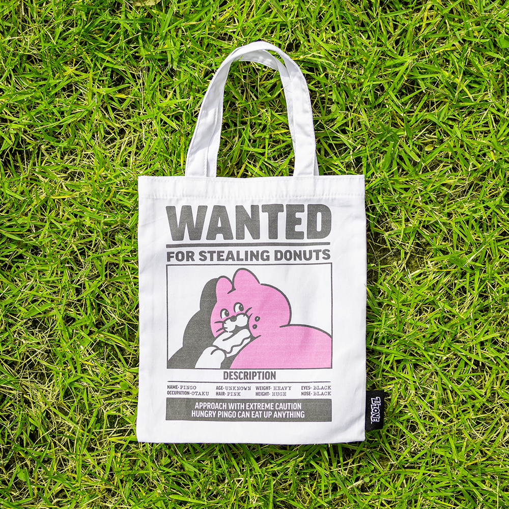 지존의 대표 캐릭터 핑고의 카툰, 아트워크 이미지가 핑크와 블랙 2도로 인쇄되어 전체적인 룩에 발랄한 포인트를 주는 미니 에코백입니다.